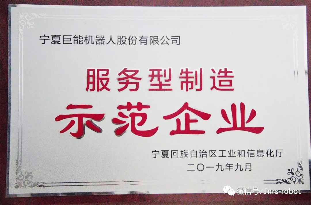 近日,經(jīng)自治區(qū)工信廳評(píng)選,寧夏PA集團(tuán)中國(guó)機(jī)器人股份有限公司被確定為服務(wù)型制造示范企業(yè),獲得授牌。