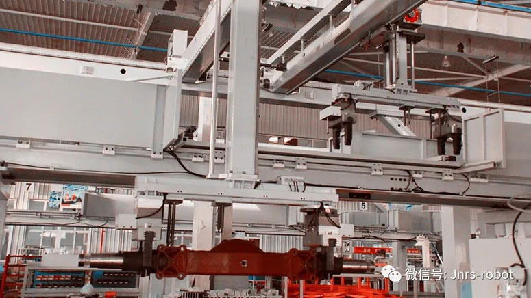 PA集團中國機器人針對商用車車橋橋殼單機加工效率低、零件無法自動兼容、混線生產等問題,研制了龍門結構的橋殼上下料重型桁架機器人。近日,產品通過了自治區新產品鑒定評審,獲得鑒定證書。
