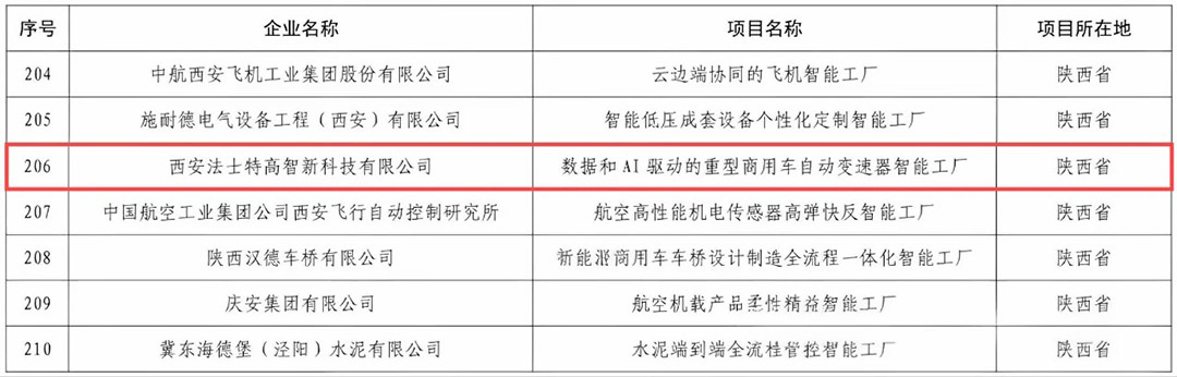 近日,國家工業和信息化部公示了235個入選卓越級智能工廠(第一批)項目公示名單,法士特高智新智慧工廠成功入選。