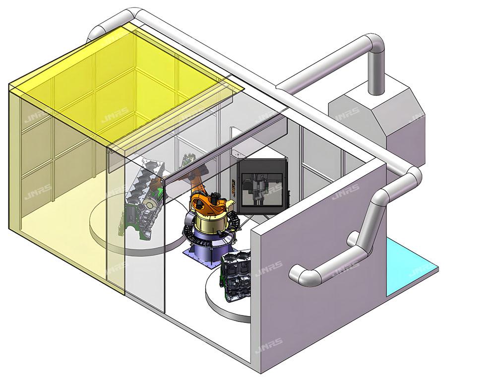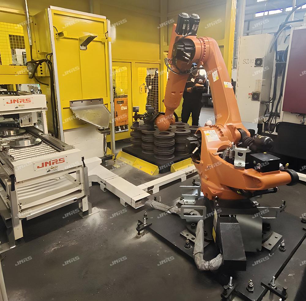 FR系列是基于機器人搬運零點夾具托盤的搬運系統,是基于通過柔性制造軟件完成柔性加工的產品。該系統可實現多種零件的兼容,通過零點定位系統更換機床夾具托盤的方式是現實換產。系統包含加工機床,機器人托盤搬用系統,線邊庫,上下料站,清洗單元等。